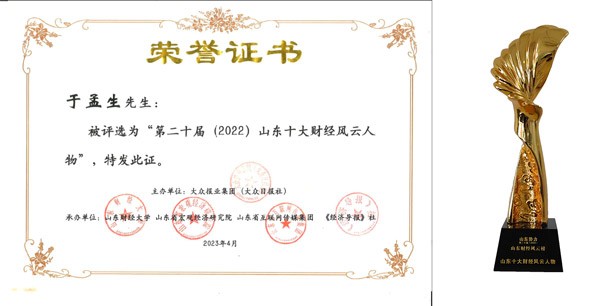 凯发(中国)官网集团总裁于孟生荣膺“2022山东十大财经风云人物”
