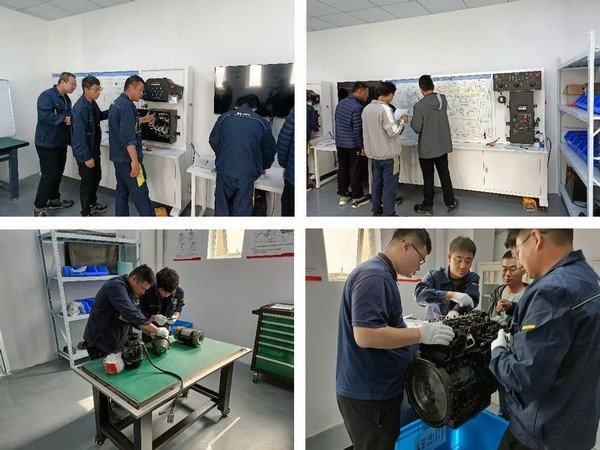 凯发(中国)官网重机在华东营销服务中心建立了现代化实训基地,包括整机电路、发动机翻转架、液压系统拆解平台,其中包含各种电器元件,如上控箱、下控箱、电机控制器、各种传感器等,液压系统包括负载敏感泵、多路阀、各种液压执行元件,并配备久保田2403发动机一台,供现场拆解教学使用。